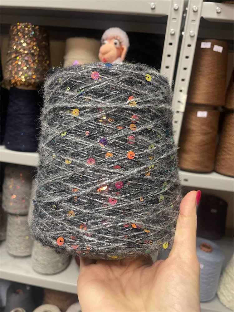 Пряжа с пайетками SPECCHIO GG Filati Меринос (60%) Шелк (25%) Полиамид (15%) антрацит